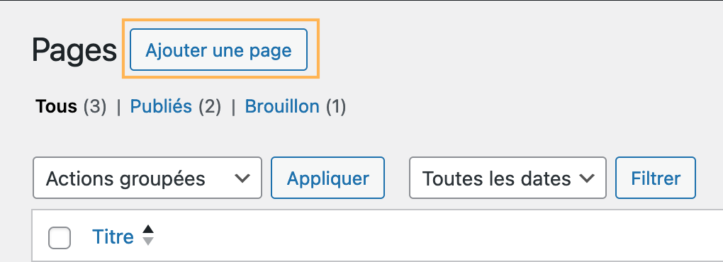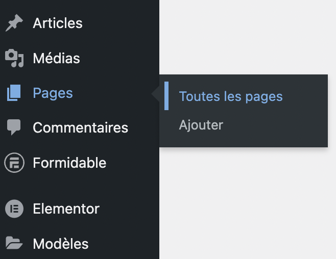 Pour créer ou modifier une page dans WordPress, il faut vous rendre dans l’onglet « Pages » de votre panneau de configuration.
